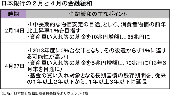 日本銀行の2月と4月の金融緩和拡大画像表示