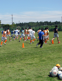 挨拶後、ウォーミングアップに励む少年たち (撮影:編集部)