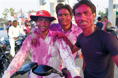 「色のお祭り」を楽しむ青年たち (撮影:筆者)