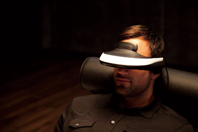 頭部に装着すると、まるで映画館で観賞しているように眼前にワイドスクリーンが広がり、内蔵ヘッドホンからの音響も迫力がある。HDと呼ばれる高画質のコンテンツに対応し、通常の映像だけでなく3D(立体映像)も楽しめる。