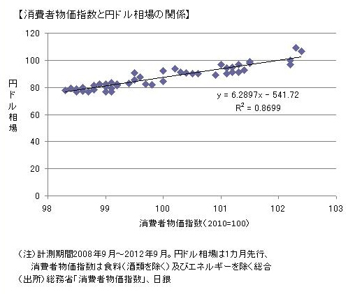 (図表1) 消費者物価指数と円ドル相場の関係拡大画像表示