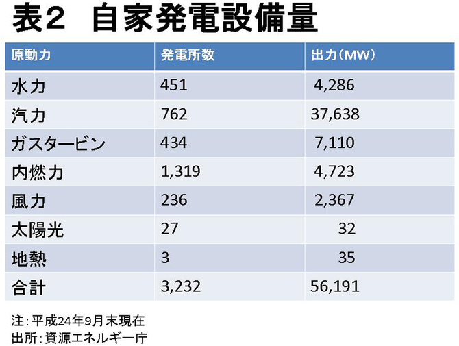表2 自家発電設備量拡大画像表示