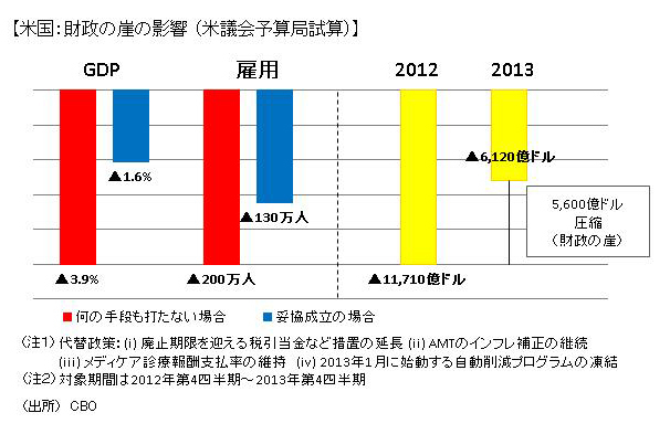 図表3 米国:財政の崖の影響 (米議会予算局試算)拡大画像表示