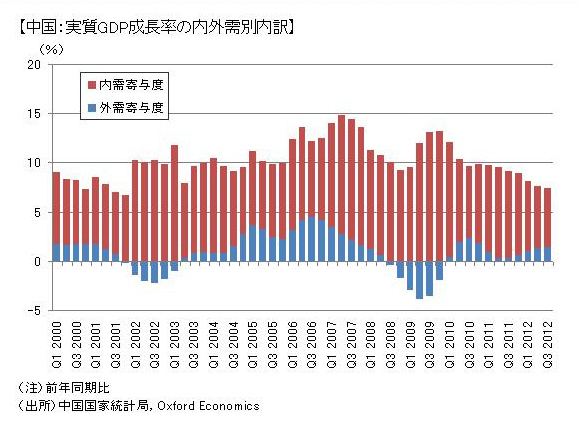 図表2 中国:実質GDP成長率の内外需別内訳拡大画像表示
