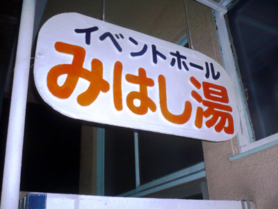 みはし湯は、蚊帳の海一座が中心となり「みはし湯運営委員会」をつくり、「イベントホール みはし湯」の看板を掲げたのです! ハイ!