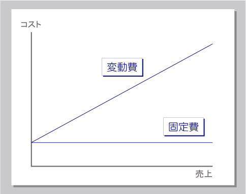 こうした人のコストと場所のコストは、売上に関係なく発生する固定費なのだ。変動費と固定費がどんなものかわかったところで、これを図にしてみよう。