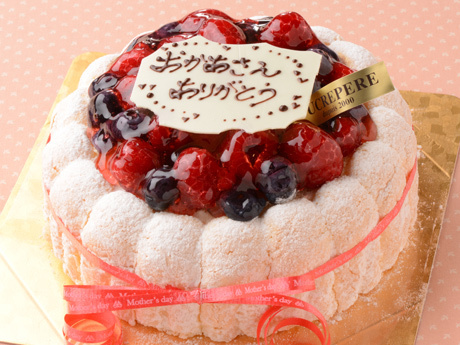 全国宅配スイーツのうち、パティスリーシュクレペール「シュクレママン」(直径約15センチ、約4~6人用=2,800円)は、上品な甘みのマダガスカ ル産バニラビーンズを使ったバニラクリームをサクッとした食感のビスキュイ生地で包み、フレッシュなラズベリーとブルーベリーをトッピングしたもの。2日 前までの予約が必要で、母の日までの配送希望は5月9日まで受け付ける。