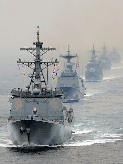 08年以降、韓国海軍はイージス艦2隻を相次いで就役(現在、3隻目が試験運用中)させたほか、外洋航行に適した攻撃型潜水艦9隻を整備。駆逐艦6隻を含めた初の機動部隊を創設している。編成の目的は「国家の対外政策の支援、海上交通路の防衛、北朝鮮に対する抑止」を掲げているが、海上自衛隊幹部は「韓国は日本に負けたくないという思いが強い。あれだけの数のイージス艦と潜水艦をどこで使うのか。韓国がリムパック(環太平洋合同演習)以外で、太平洋で訓練したことなど見たこともない」といぶかる。対潜水艦作戦を念頭に置いたP3Cなどの哨戒機も16機保有しているが、搭載する対艦ミサイル「ハープーン」で攻撃するような水上艦は、北朝鮮軍には見当たらない。
