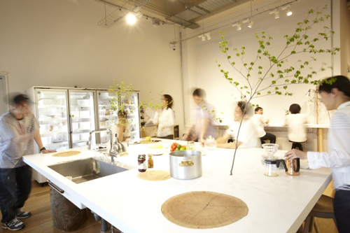 訪れたのは、JR田町駅から徒歩15分・ゆりかもめ芝浦ふ頭駅から徒歩10分の距離にある「ヒュー・プラス」。ここは昨年5月に「食」のビジュアル表現の可能性を広げる新空間としてリニューアルした建物で、オフィスとして利用する以外にも撮影や食に関するワークショップが行われている。もともと倉庫だった建物をリノベーションしたため天井が高く、床面積に比べて広く感じられる空間だ。6階、7階の2フロアに6面のキッチンスタジオがあり、機材や撮影のための小道具を収納するためにも、天井の高さは役立っている。食に関する世界各国の書籍や食器を集めたフロアもある。