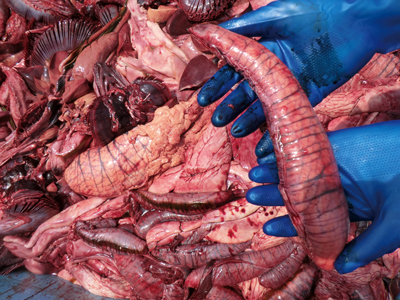 クロマグロが孕んでいた卵。こうした卵は主に魚粉(エサ)に利用される