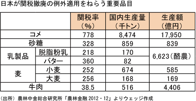 日本が関税撤廃の例外適用をねらう重要品目拡大画像表示