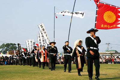 萩時代パレードでは、高杉晋作が率いる奇兵隊も登場