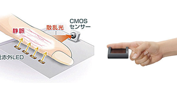 ソニーは、00年前後から独自の指静脈認証技術の開発に着手した。モフィリアの指静脈認証技術は、構造がシンプルで、それが小型という特徴につながっている。静脈が集中している手の指の第1、第2関節を認証装置に置く。そのとき近赤外LEDを照射し、そこで浮かび上がった静脈をCMOSセンサーで撮影するという仕組みだ。