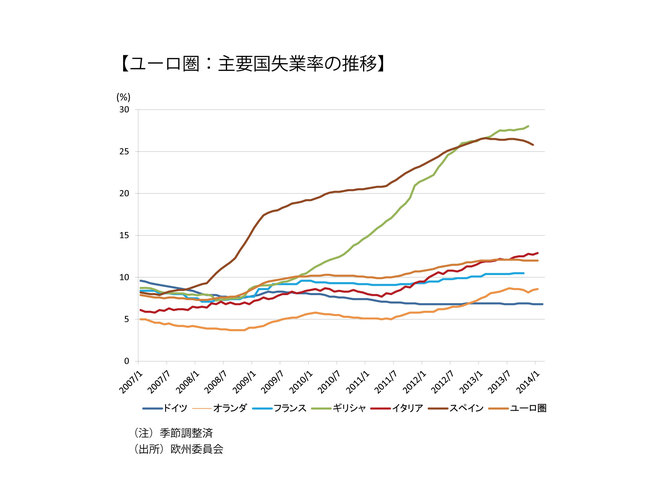 今ユーロ圏経済で起きているのはこのような動きだ。景気回復と言っても、ギリシャ等経済再生を図る国にとっては決して楽な回復ではなく、2014年のユーロ圏経済は、好調なドイツと、厳しい回復を図る国々に二極化される展開が続くこととなろう。