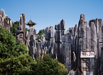 中国・昆明の石林イ族自治県にある望峰亭(写真・アフロ)