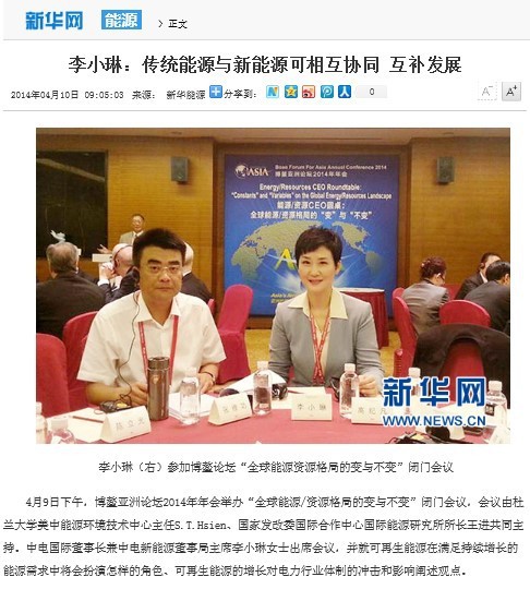 李小琳女史は1961年生まれで、父親の李鵬氏は1988年から98年まで10年にわたって首相を務めた。首相時代には三峡ダム建設にイニシアチブを持ち政権での建設賛成派をリードし、建設にこぎ着け、その後はプロジェクトの権限を一手に握った。李女史は現在、中国電力国際発展有限公司(以下、中電国際と略称)の董事長(代表取締役)で中国電力新能源発展有限公司(以下、中電新能源と略称)の董事長も兼任する。