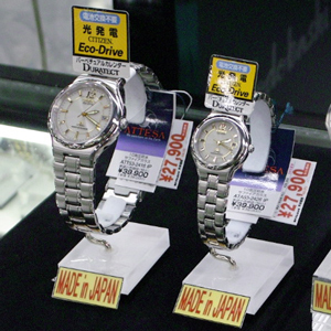 中国人の消費行動をこう断言するのは、秋葉原にあるヨドバシカメラマルチメディアAkibaの今井勇次氏だ。特に腕時計コーナーでは、「中国人の観光客はまず、日本製はどこですかと聞いてくる」(販売員)ことが多いようで、ショーケースの中の商品には「Made in Japan」や中国語で「日本製」と赤字で書かれた札が、値札よりも目立つように添えられている。