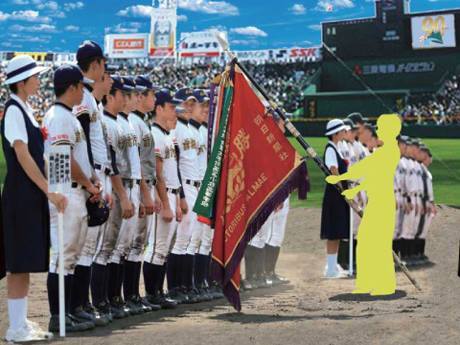 甲子園外周で高校野球3Dアート-優勝旗受け取る主将になりきり撮影(西宮経済新聞/2014/7/23)