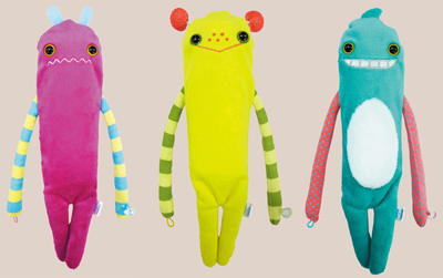 ぬいぐるみのカラーは3種類で、デザインがそれぞれ異なり、愛称もついている。日々の手入れは、水洗いし、絞って干すだけ。ぬいぐるみの腕同士がボタンで留められるようになっており、風呂場のタオルかけなどに引っ掛けておくことができる。