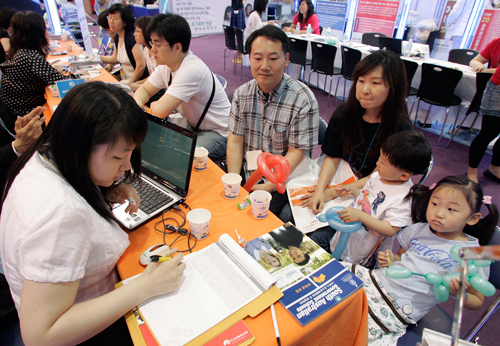 留学フェアに参加する親子(写真:ロイター/アフロ)