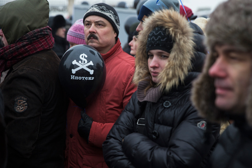 ルーブル安で窮状を訴える外貨建てローンの債務者たち(写真:AP/アフロ)