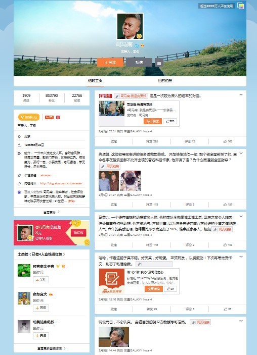一人は中国の保守派(中国では毛沢東思想を主張するグループとして「毛左派」と呼ばれる)の代表的な論客である司馬南氏である。テレビ番組の司会を務めたり、時事論評も盛んに行っており、中国で保守派と言えば司馬南か孔慶東(北京大学教授)と言われるほどである。中国版ツイッター新浪微博では司馬南氏は85万3000人超、孔慶東氏は289万人ものファンを抱える。ところが最近、この司馬南氏が米国に妻子を移住させ移民したとネットで騒がれ、保守派の間に動揺が生じている。こうした中での番組出演が非常に注目を浴びたのだった。