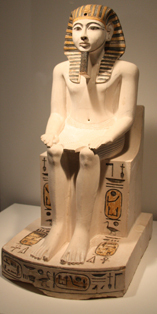 ディール・アル=マディーナとは、新王国時代の王や王族の墓の造営に携わっていた職人たちが住んでいた所。ここは「王家の谷」や「王妃の谷」に近く、貴重な出土品が数多く発見されている。その1つが、会場に入ってすぐに現れる「アメンヘテプ1世座像」だ。