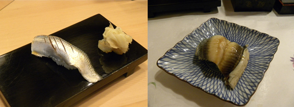 しっとりとクセになる味わいのコハダ(左)、ふっくらと仕上がったあなごも絶品(右)