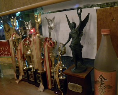 手前のブロンズは、TVチャンピオンの巻き寿司部門の優勝トロフィー