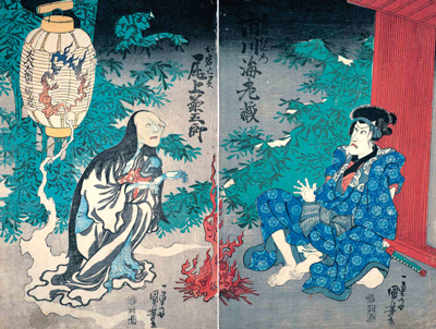 歌川国芳《民谷伊右衛門 市川海老蔵・お岩亡霊 尾上菊五郎》天保7年(1836)大判錦絵 *8/8~9/13(後期)展示