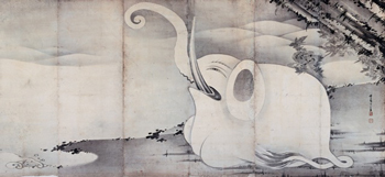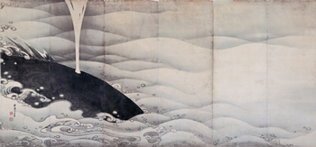 象と鯨図屏風(左隻)撮影 山崎兼慈 MIHO MUSEUM所蔵