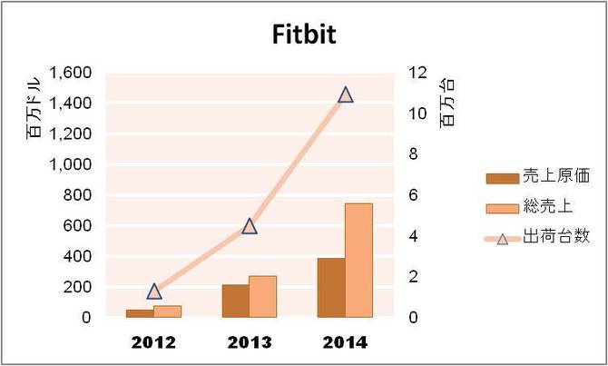2013年にリストバンド型のいわゆるフィットネス・トラッカー(活動量計)を発売し、 2014年には心拍計を備えたモデルを追加して売り上げを伸ばし1090万台を出荷している。売り上げの伸びも凄いが、その粗利率(48%)の高さも驚きだ。やはりハードウェア企業のIPOは、その企業価値が明快で見ているだけでも気持ちがいい。