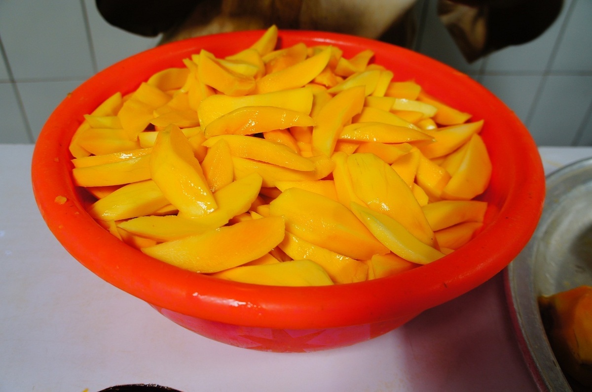 中でも種類が豊富になるのは4月以降だが、この時期から8月まではドライマンゴーの製造もさかんに行われており、彼女も今シーズンの製造を始めた4月下旬から、週7日、今も休みなく製造ラインを動かしている。