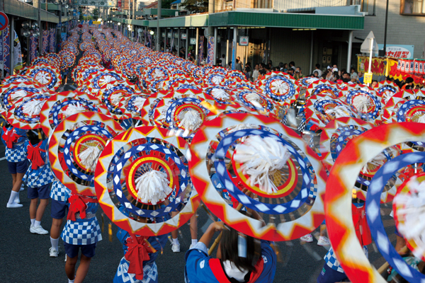 祭りは、13日の前夜祭から15日の市民納涼花火大会まで3日間にわたって行われ、38万人の観客が訪れるという。4千人を超える踊り手が若桜(わかさ)街道をはじめ、市街地を踊り歩く「一斉傘踊り」は、14日の開催。この日限定で、しゃんしゃん傘踊りの振付を教えてくれる、体験コーナーも特設される予定。