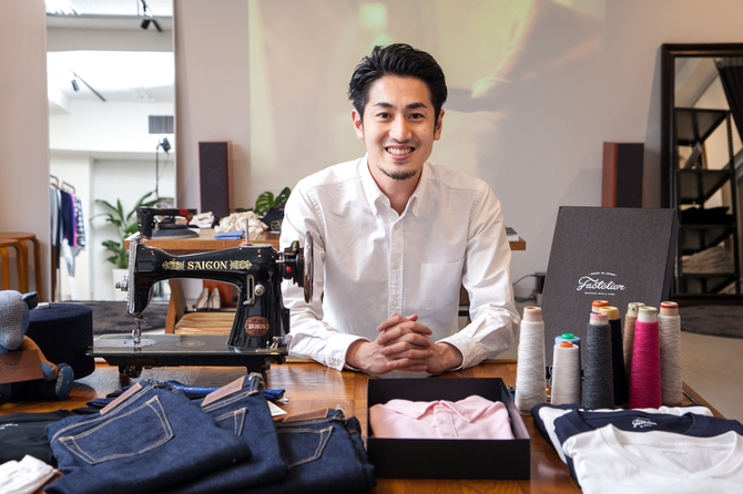 実家が熊本市の婦人洋品店だった山田さんは、日本の縫製業が衰退していくのを目の当たりにしてきた。日本の縫製業を守るためにはどうしたらいいのか……。考えついたのは、作り手と使い手を直接つなぐことだった。熊本県人吉市のシャツ工場と提携してワイシャツの販売からはじめ、ジーンズ、ポロシャツ、ネクタイ、そして、カバン、財布など商品展開を広げている。