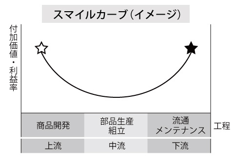 曲線が笑ったときの唇の形に似ていることから、「スマイルカーブ」と呼ばれる。