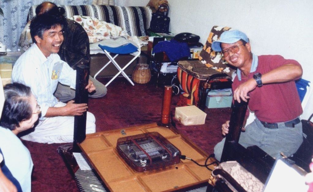 秋津のおばあちゃん宅でコタツの脚を長く改造中のノリノリ父さんたちと喜ぶおばあちゃん