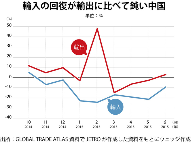 輸入の回復が輸出に比べて鈍い中国 (出所)GLOBAL TRADE ATLAS資料でJETROが作成した資料をもとにウェッジ作成拡大画像表示
