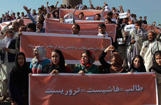 10月1日、カブール中心部でタリバンと政府に対してデモを行った市民(Getty Imagdes)