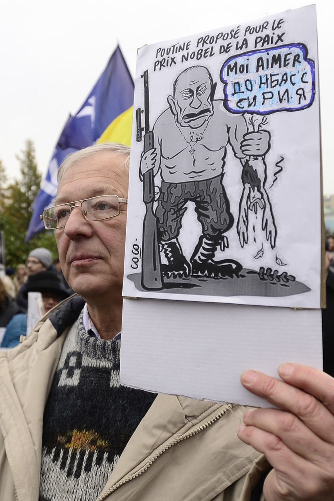 10月17日、モスクワの広場でシリア空爆を反対するロシア市民(Getty Images)