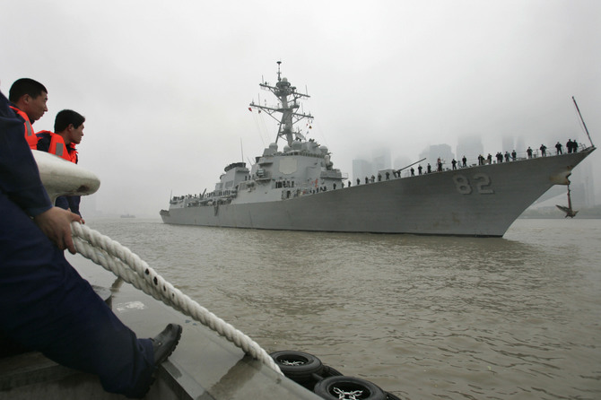 10月26日、米国防当局者は、米海軍が横須賀基地に配備しているミサイル駆逐艦「ラッセン」が、南シナ海で中国が造成した人工島から12カイリ(約22キロ)内に派遣したと報じた。(写真:ロイター/アフロ)