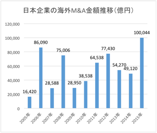 日本企業による海外M&Aはリーマンショックにより一時的に停滞したが、2010年に増加に転じ、11年から円高などを背景に増加、その後は為替が円安になったにもかかわらず衰えていない。これまでM&Aに縁のなかった内需関連の食品、物流関連企業も積極的に海外企業を買収するようになってきており、消費高齢化による国内マーケットの縮小を背景に、時間を節約して事業を拡充できる企業の海外買収戦略は業種に関係なく重要な経営課題になっている。