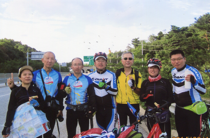 9月14日 国道7号線を60キロほど北上。午後5時近く自転車ツアーをしている一行に遭遇。中国広東省東莞市の市職員の8人組である。最長老は68歳で最年少は42歳。平均年齢49歳で8人のうち二人は女性だ。
