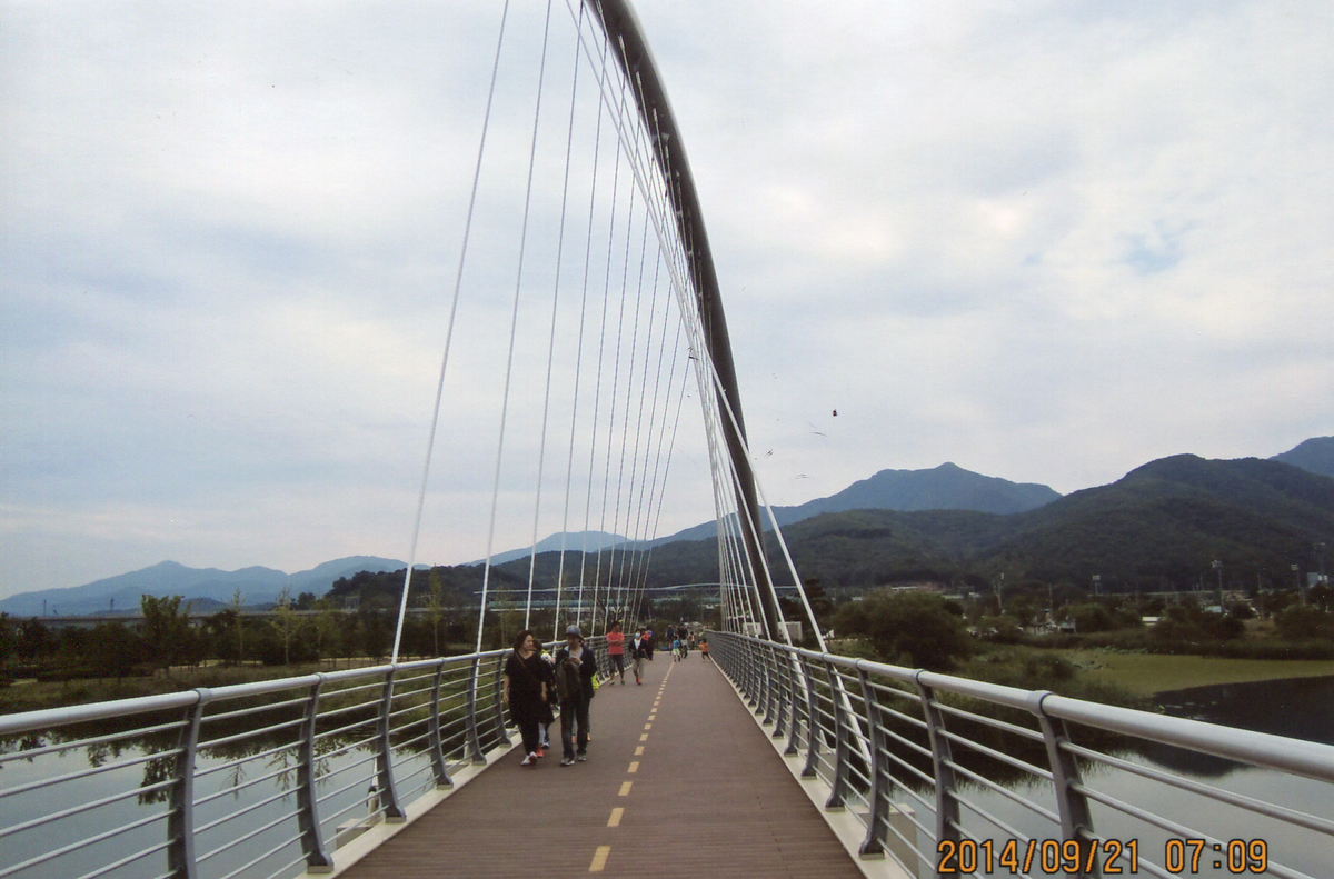 近くに自動車・歩行者の南漢江大橋があるのに自転車専用のつり橋を新設して いる