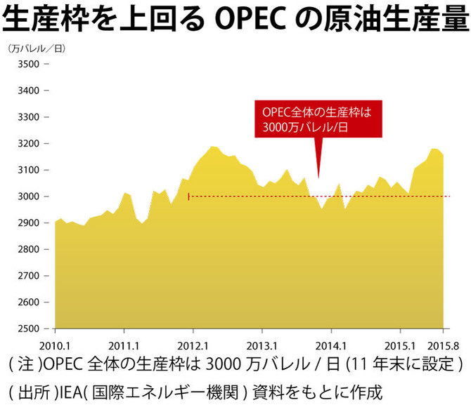 生産枠を上回るOPECの原油生産量拡大画像表示