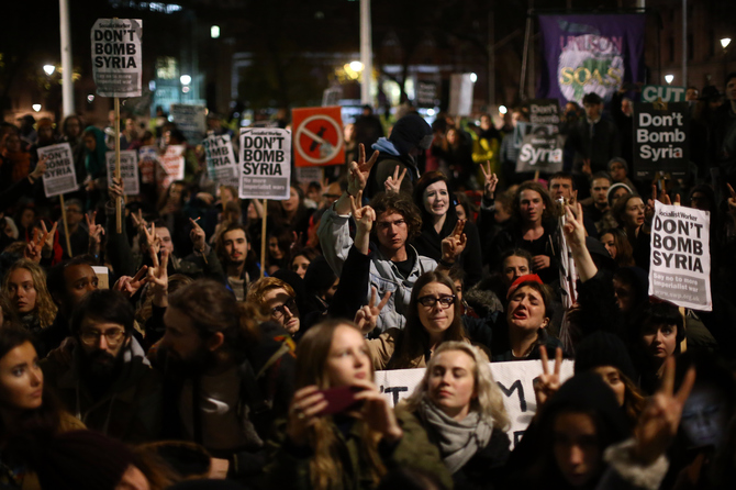 ロンドンで行われたシリア空爆反対デモ(Getty Images)