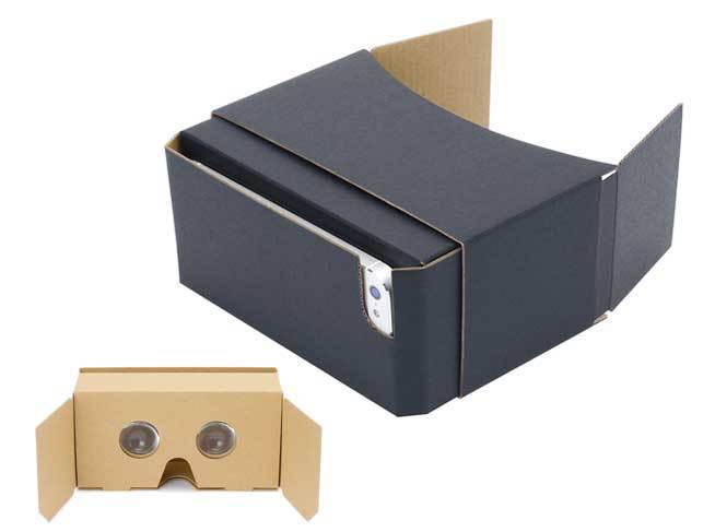 段ボール製のビューワーに専用のアプリをダウンロードしたスマホを繋ぐだけで仮想現実を体験できる。