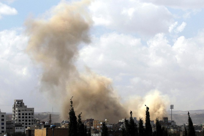 サウジアラビアによる空爆直後の写真。イエメン・サヌア(Getty Images)