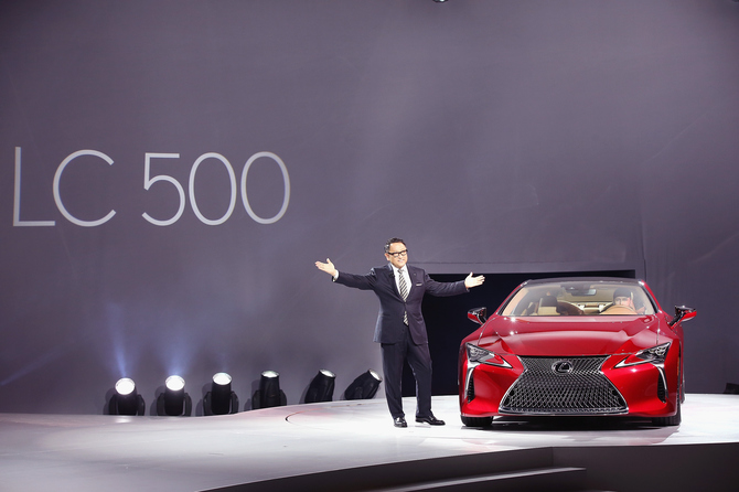 レクサス「LC500」クーペをプレゼンする豊田章男社長(Getty Images)