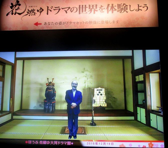山口県コミュニティ・スクール推進フォーラムにパネラーとして伺った際に立ち寄った防府市に設けられたNHK大河ドラマ「花燃ゆ」のドラマ館での筆者(2015年12月19日)。